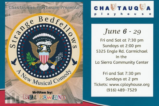 Politics meets pandemonium in this World-Premiere musical by Sacramento songwriter Bill Rowland! Reporters hunt for scandal, a scheming First Lady-to-be plots dirty tricks, romance rekindles on the campaign trail, and a surprise “birther” controversy ignites side-splitting chaos—all set to toe-tapping tunes you’ll hum on the ride home.